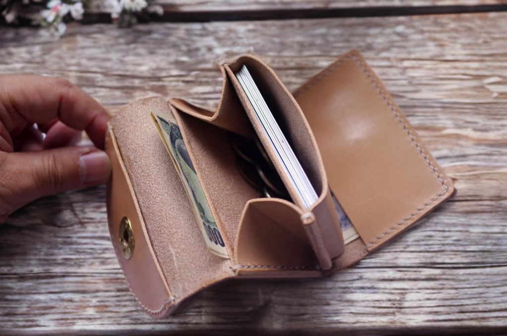 お札を差し込こみ収納する設計です。上下どちらからでも出し入れ可。カードやコインもしっかり整理できます。小さめのサイズ感なので、ポケットやバッグの中でも邪魔にならず、ミニマリストにもおすすめです。