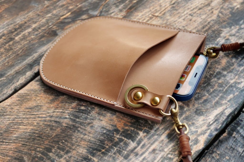【受注製作】本革サドルレザーのリングスマホショルダーポーチ